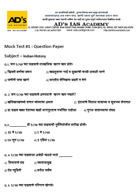 Here are the details of the “Test Series”: Test Papers for English and Marathi WILL NOT be provided. This Test Series is ONLY for GS I to IV.